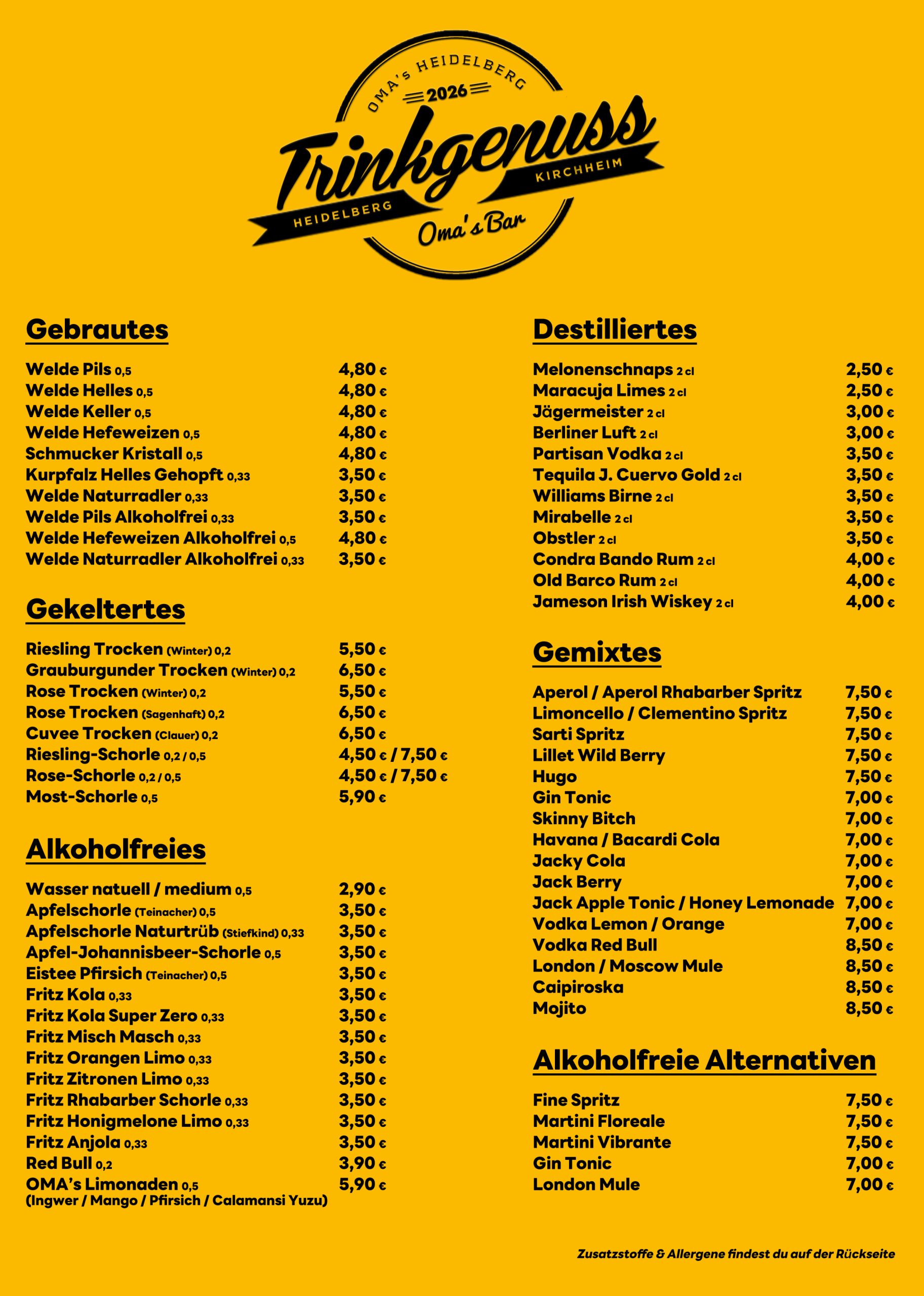 OMA’s steht nicht für familiäre Beziehungen oder Traditionen, sondern ist die Kombination der Vornamen der Gründer Olli und Markus. Wir bieten ein grünes, entspanntes Ambiente mit einer vielfältigen Getränkeauswahl, Musik von Alternative bis Rock und sind familienfreundlich mit einem Kinderbereich neben dem Biergarten.